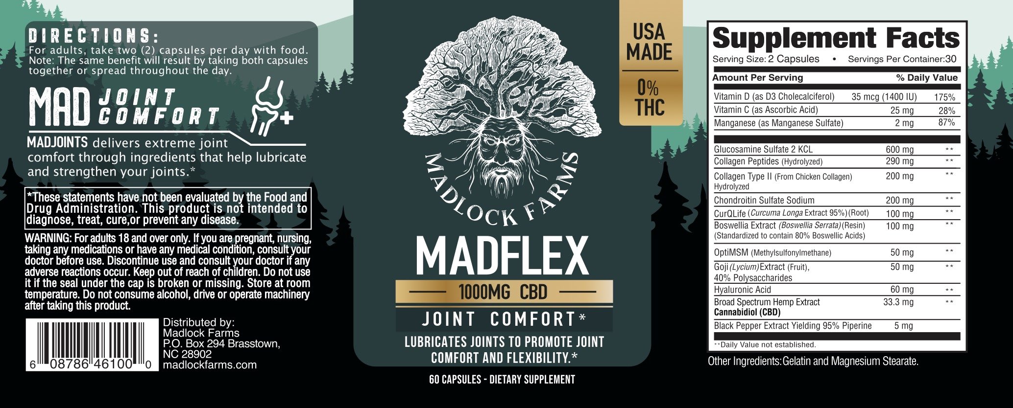 MADFLEX combines multiple products that are known to be used as anti-inflammatory, pain relief, and joint function. Glucosamine and Chondroitin have been used for many years to treat knee pain and arthritis. Adding ingredients like Boswelia and CBD bring this supplement to another level of joint comfort.